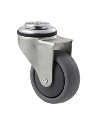 K Series castor, 65mm x 23mm TPE rubber wheel, precision bearing, thread guard, swivel bolt hole, Chicago screw axle, 50 kg load rating