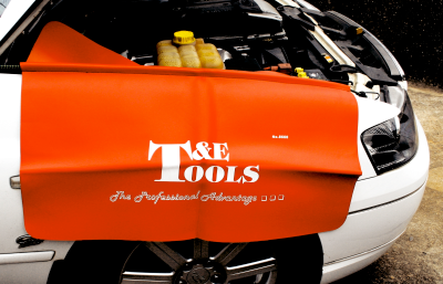 Fits cars and trucks, including front wheel drive vehicles with narrow fenders. Protects vehicle painted surfaces from chemicals and scratching while service is performed, without falling off the vehicle.