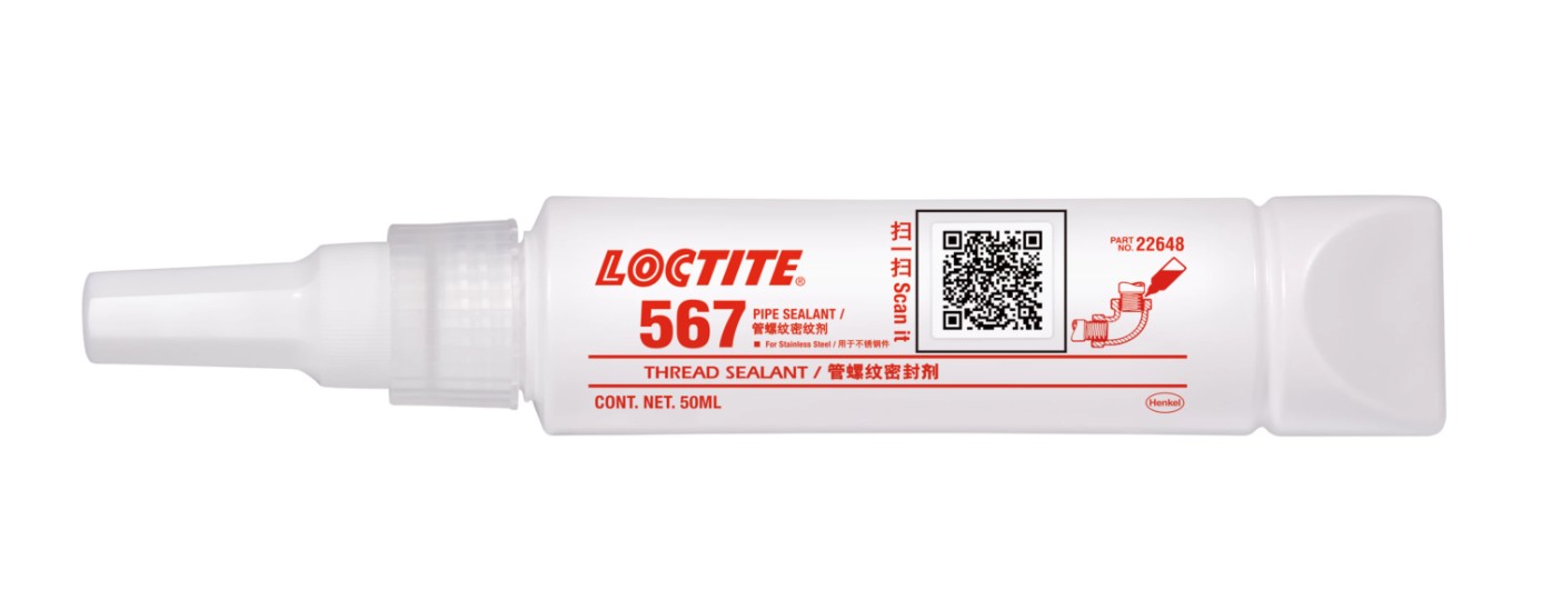 LOCTITE® 567 is a white, 1-part thread sealant designed for the locking and sealing of tapered metal pipe threads and fittings. As an anaerobic-curing thread sealant, it cures when confined in the absence of air between close-fitting metal surfaces and prevents loosening and leakage due to shock and vibration. Its high lubricating properties prevent galling on stainless steel, aluminium and all other metal pipe threads, and allow easy disassembly. The product offers high temperature performance and oil tolerance. And it tolerates minor surface contamination from various oils, such as cutting, lubrication, anti-corrosion and protection fluids. Meets the performance requirements of KIWA GASTEC QA AR 214 for admixtures up to and including 100% hydrogen gas – certifications are available in select countries.