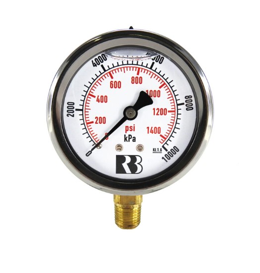 Pressure Gauge, 63mm Bottom Entry, 100kpa/15psi, S/S Case, Liquid Filled, 1/4" BSP