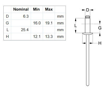 Rivet, Dome Head, Aluminium, #810, 500 per Box (1/4")
