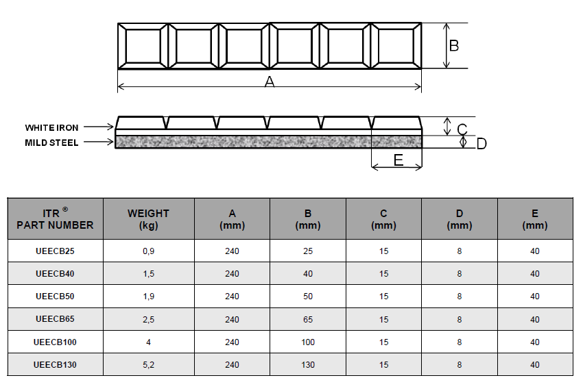 UEECB25 CHOCKY BAR NOTCHED HB700, 240 x 25 x 15 x 8 X 40mm